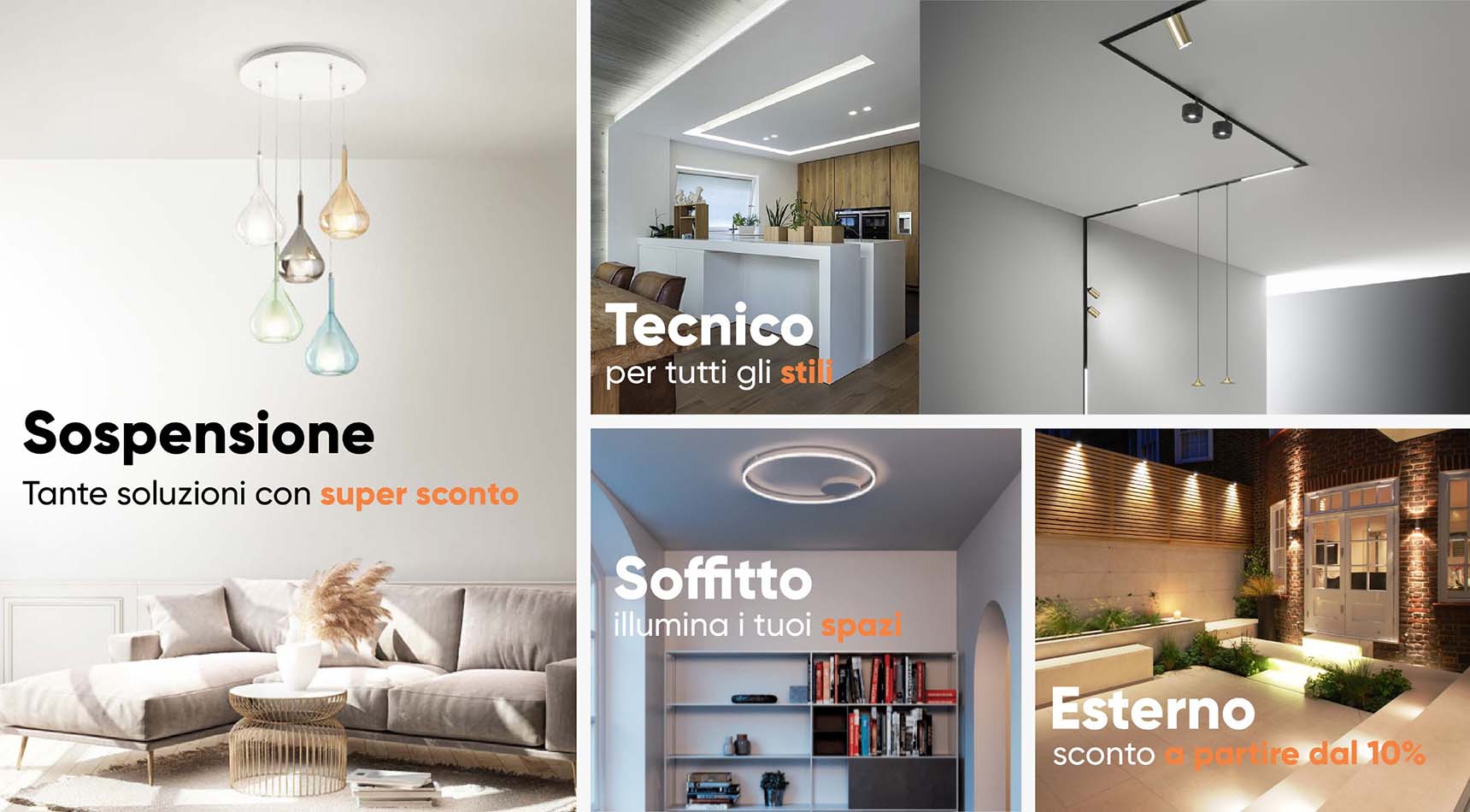 Sospensioni, plafoniere, illuminazione tecnica, illuminazione da esterno...